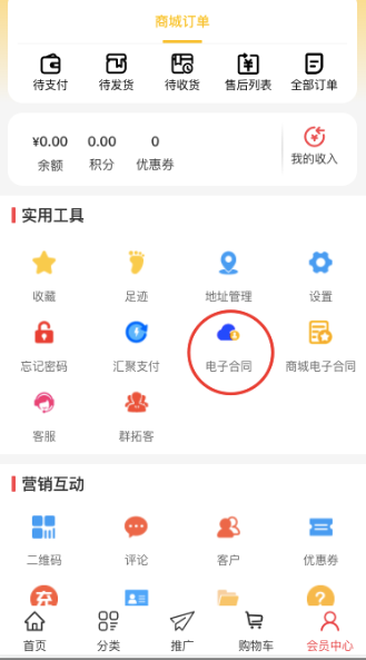 进入商城个人中心--电子合同,选择企业--管理